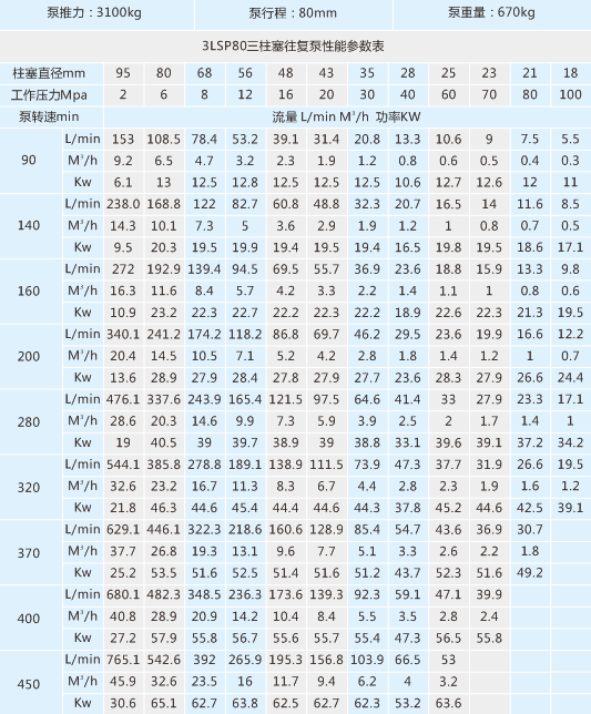 ※ 你選型時表中流量不合適,可用電磁調速,變頻調速,變換柱塞直徑來調節流量,滿足選型需要。